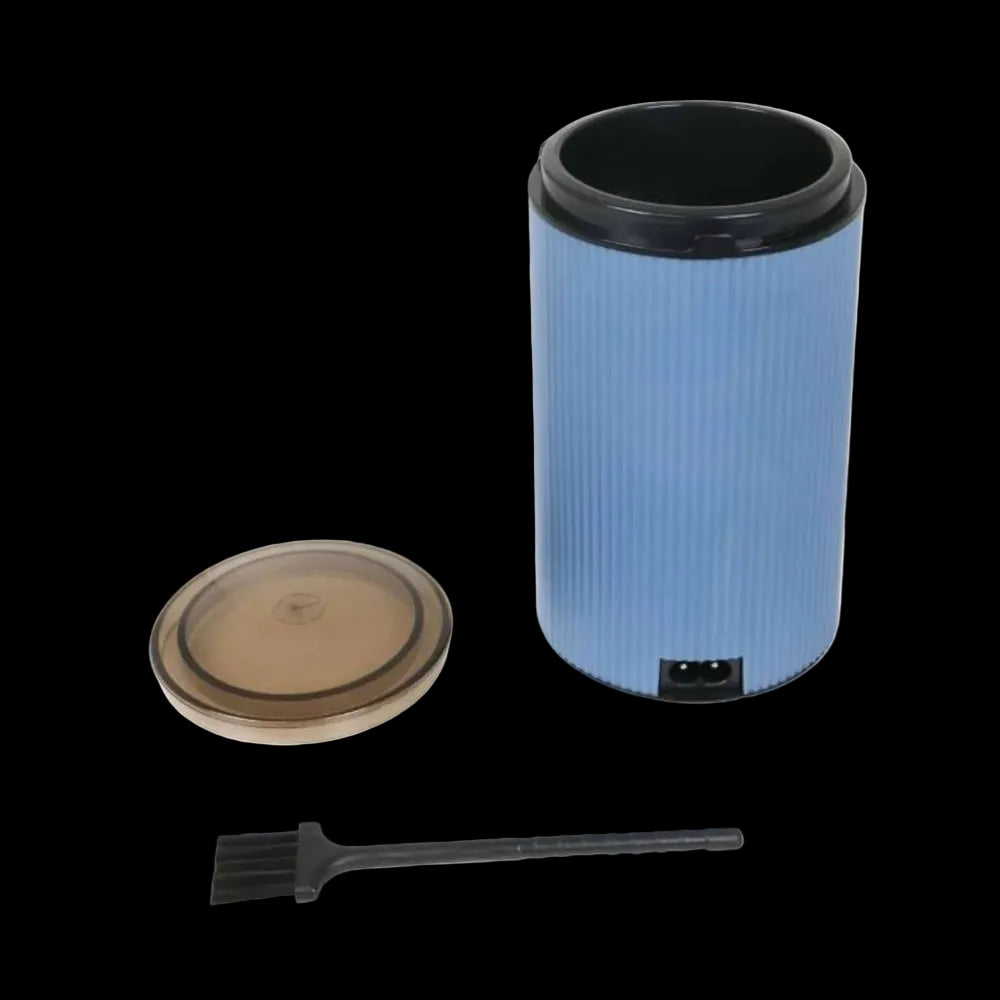 - Color: azul con tapa negra.